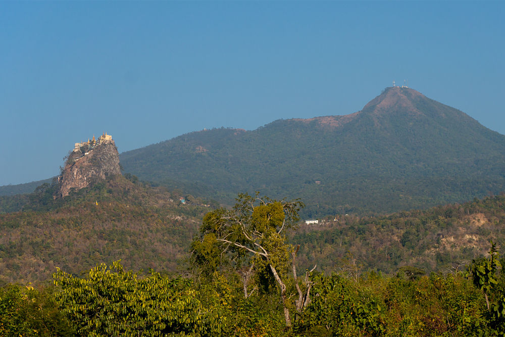 So, according to Sayagyi Salai Tun Hlaing, State Education Officer, in 1986, “Popa, originally ‘Pupa’ in Zo language was a corrupted to Burmese word, “Popa”. Pupa was an honorific Zo title for “Master or Grand-father”, given to the gigantic volcanic ‘plug’ sticking up to 737 meters above sea level, for its awesome magnificence. Not surprisingly their forefathers would have believed it to be the abode of a supreme spirit and offered sacrifices to propitiate him calling ‘Pu-Pa’ since none of these names, Pagan and Popa, translate into the Burmese language, the veracity of the claims cannot be repudiated unless proved otherwise.